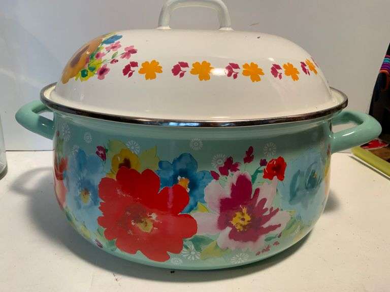 Pioneer Woman Breezy Blossom 4 Qt Dutch Oven with Lid Floral Enamel on Steel NEW