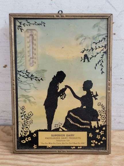 LOT 9653 - Vintage "Superior Dairy" Advertising Silhouette Thermometer 5x7. 7B