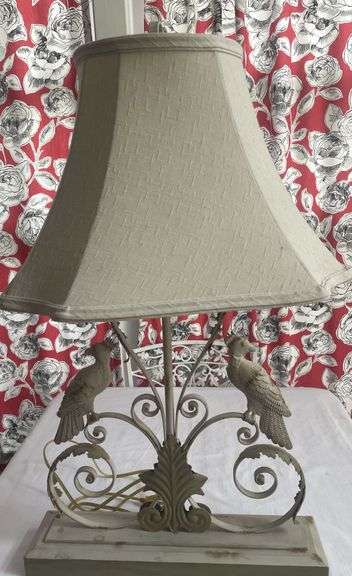 LOT 7307 - Metal Bird Lamp with Shade & Finial, Works
