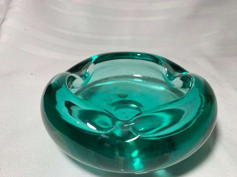 Vintage Murano Glass Controlled Bubble Emerald Green Cigar Ashtrays