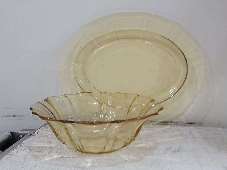 Amber Depression Glass Serving Dishes. 6D