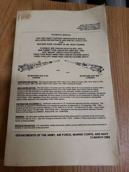 MILITARY ISSUED .50CAL TECHNICAL MANUAL. 22B