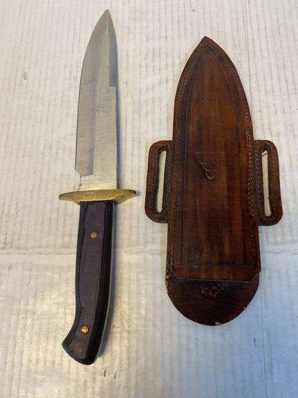 Fixed-blade Bowie knife w/leather Celtic design sheath