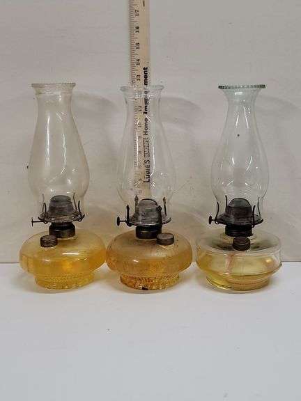 SET OF 3 VINTAGE OIL LAMPS. 00A