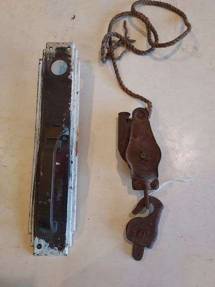 VINTAGE BRASS DOOR PULL AND VINTAGE PULLEY