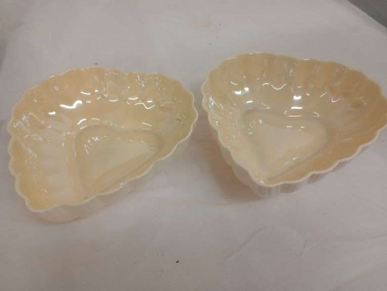 2 Belleek heart dishes