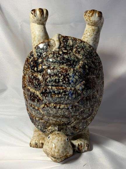 Glazed Pottery Turtle Tortoise Figurine in a yoga Arm Stand pose Ceramic Figure