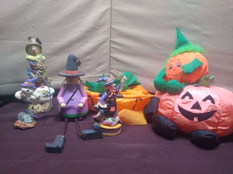 Halloween decorations lot pumpkins witches ghost scarecrow