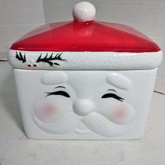 LOT 2140 - Vintage Santa cookie jar 5 1/2" x 7" x 7" tall marked Himark 1986 - VG cond.