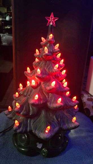 LOT 8051 - Vintage Ceramic Christmas Tree - Base has crack in it.