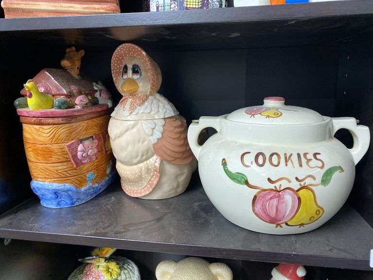 3 cookie jars - Noah's Ark, mother hen, large handled pot