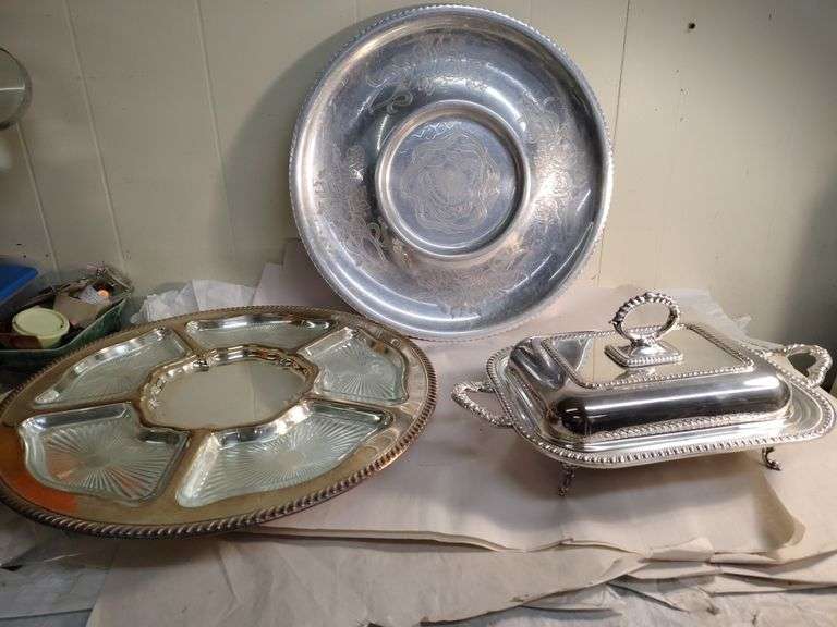 LOT 605 - Silverplate tray, lady boy vegetable tray, serving dish