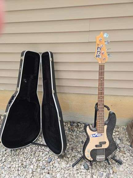 Electric Bass Guitar with w/stand. Guitar Case.