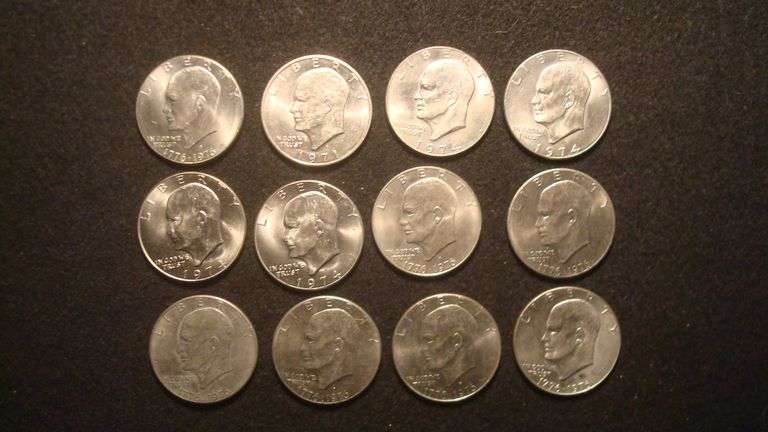 (12) EISENHOWER SILVER DOLLARS - Dates 1971, 1974, 1976
