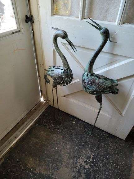 LOT 754 - Pair of metal Heron birds garden statues 39" tall