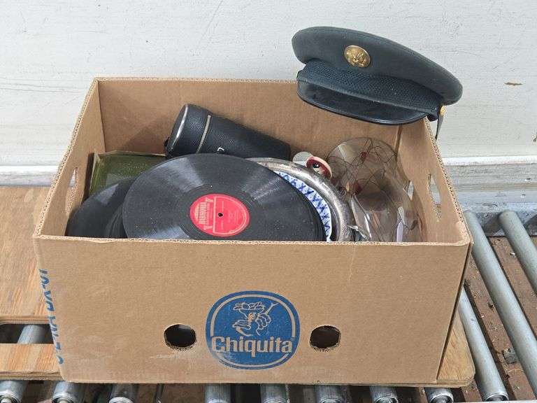LOT 1695 - Large Box of Misc. Records, Collectible Glass & more. 5C