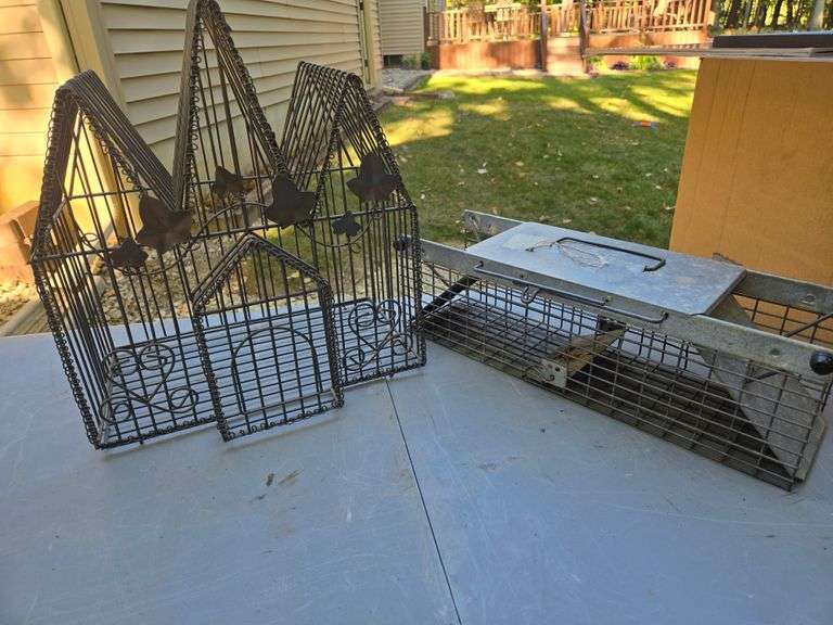 Metal Bird Cage and Steel Animal Trap.