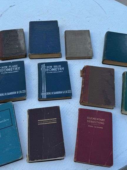 12 Antique Text: New Plane Geometry, High School Physics, Elements of Rhetoric and Composition, Elementary Surveying and Many More (Early 1900’s)