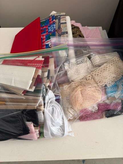 Large bag of seam bindings lace and more bag of lace and odd pieces of fabric