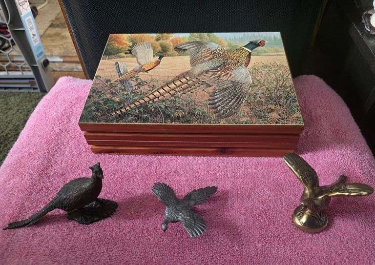 LOT 8007 - Pheasant Box w/Pheasant Pewter Figure's