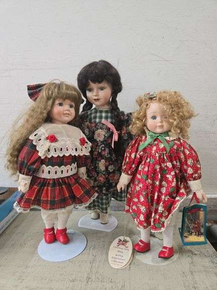 Set of 3 Vintage Porcelain Dolls with Stands. 5E