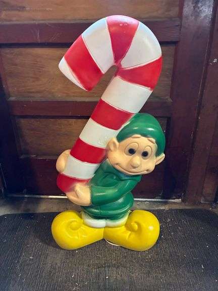 LOT 7315 - SOLD - Elf with Candy Cane Blowmold 32" Lighted (BIN $65)