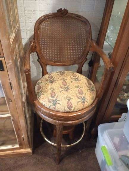 Carved cane back swivel bar stool