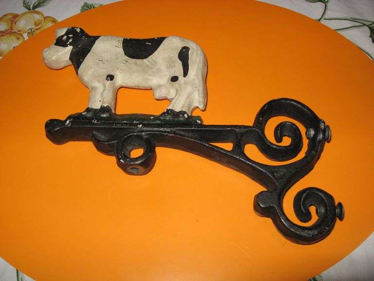 THIS IS COOL! CAST IRON COW NUMBER OR SIGN HOLDER. TWO SCREW HOLES ON THE SIDE FOR MOUNTING INTO A POST--AND ONE ON THE BOTTON.