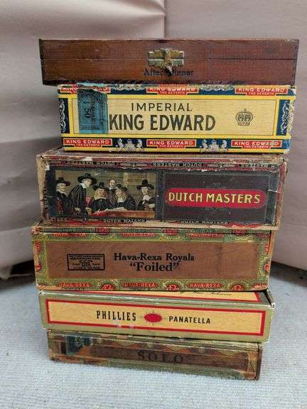 6 cigar boxes, dutch master, imperial King, Edward, solo, more