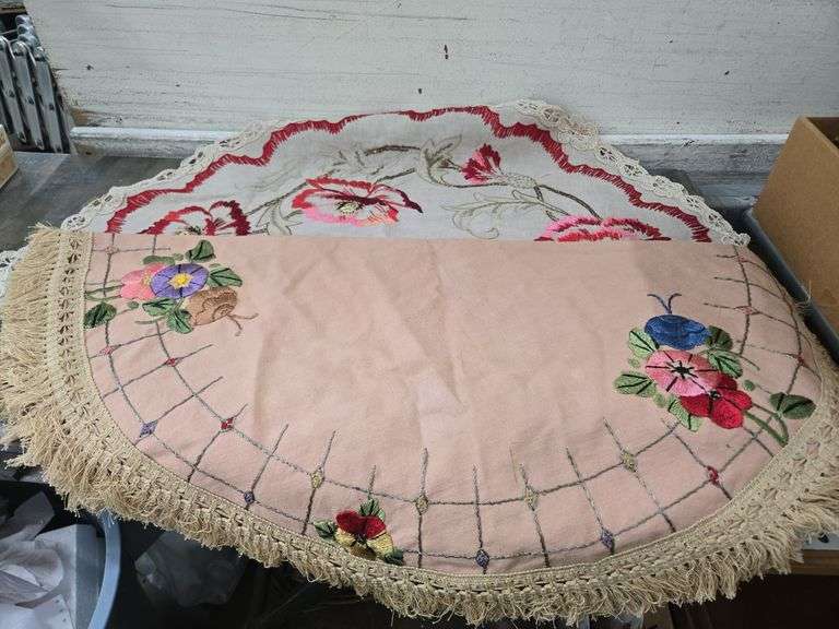 Set of 2 Vintage Embroidered Round Table Cloths. 5B