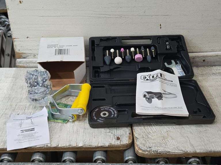 Portable Hand Chain Saw & Misc. Grinder Bits (in Case). 7C