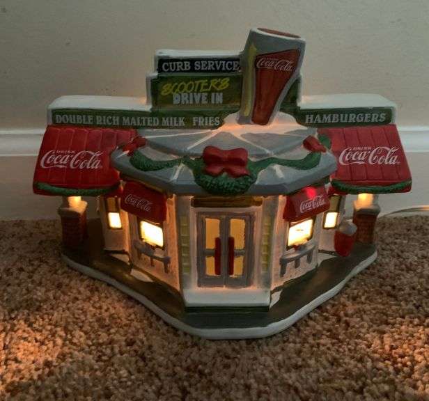 Vintage Coca Cola Town Square Collection Scooter's Drive In Diner 56222 Xmas Lighted