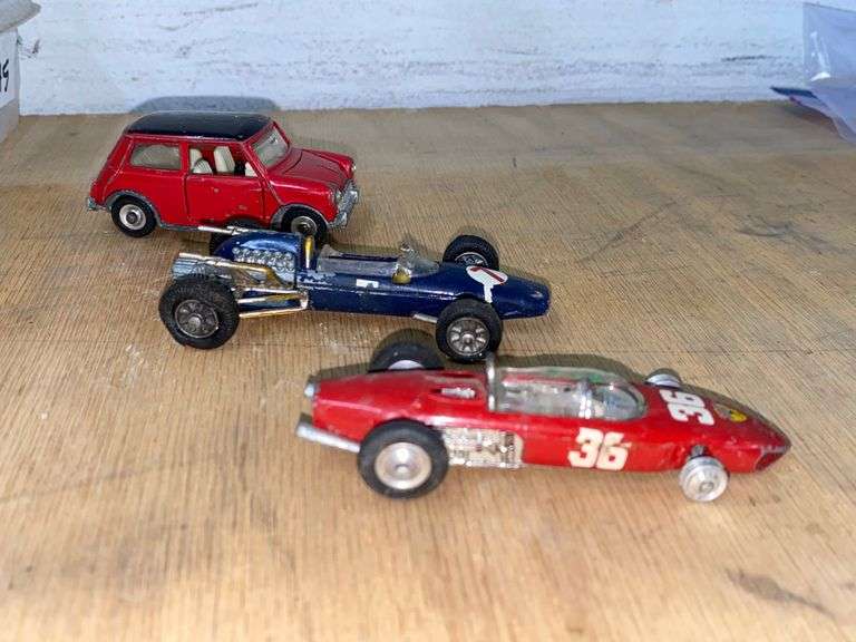 Vintage Dinky Mini Minor, Corgi Toys Ferrari and Cooper-Maserati
