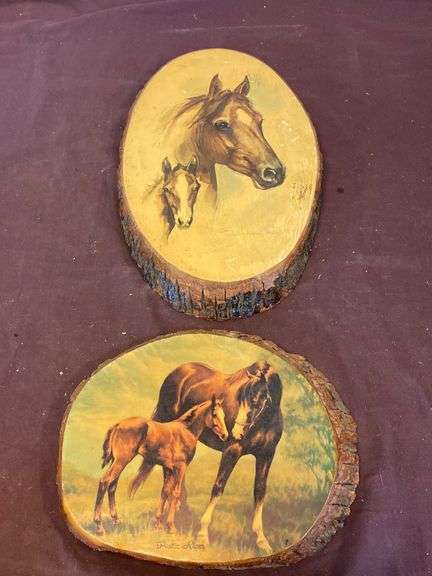 LOT 223 - 2 wood slabs with bark on, horse prints