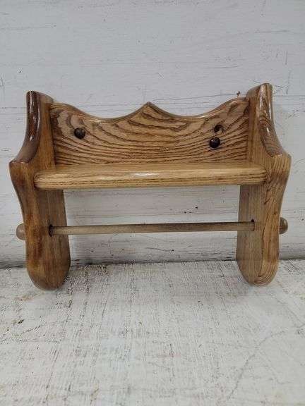 Vintage Wooden Paper Towel Holder with Shelf. 1C